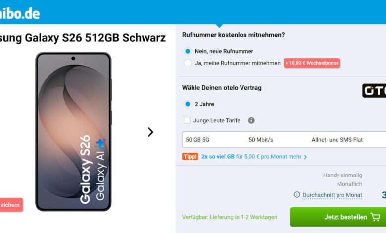 Galaxy S26 mit Vertrag für 19,99 Euro Grundgebühr